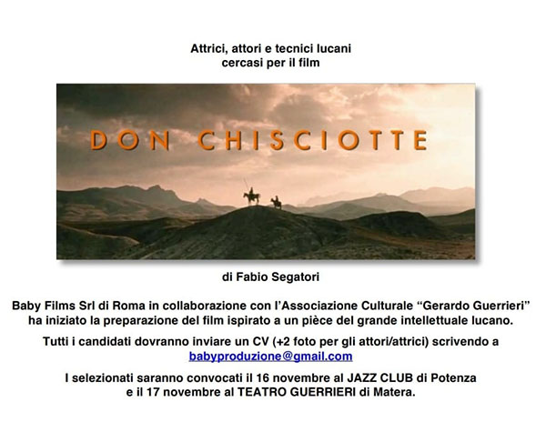 Guerrieri” ha iniziato la preparazione del film DON CHISCIOTTE ispirato all’omonimo testo che il grande intellettuale lucano ha tratto dal capolavoro di Miguel De Cervantes in oltre un anno di lavoro.
