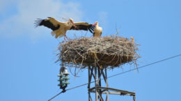 L’evento si ripete. Da ormai 26 anni una coppia di esemplari di cicogna bianca nidifica sempre sullo stesso traliccio in località Termini. Ed ecco che…