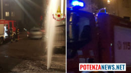 Potenza: forte getto alto più di 10 metri fuoriesce dal manto stradale! Tratto chiuso, Vigili del Fuoco sul posto