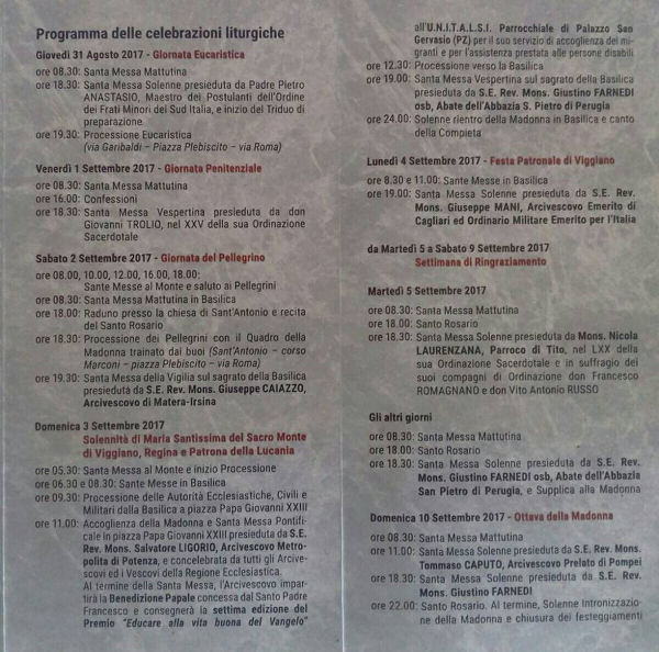 Di seguito alcune foto scattate questa mattina durante il pellegrinaggio sul Sacro Monte di Viggiano e le locandine del programma religioso e civile.