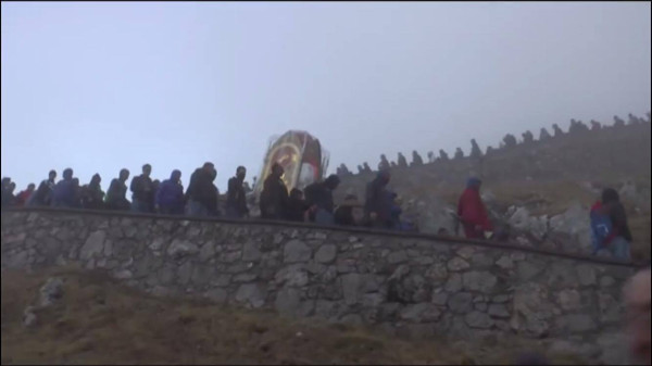 Migliaia i pellegrini provenienti da tutta la regione e dalle regioni limitrofe che nonostante la pioggia, il vento e il freddo hanno raggiunto il Sacro Monte per venerare la Vergine e accompagnarla nella Cattedrale giù in paese.