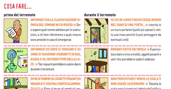 La Protezione Civile ha da sempre attivato una rete di informazione e prevenzione in caso di calamità naturali come il terremoto. Più di ogni altra cosa è utile conoscere alcune semplici norme di comportamento che quasi sempre ci garantiscono incolumità e ci salvano la vita.