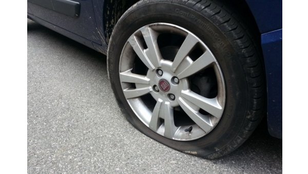 Delle 9 auto sei hanno una ammaccatura sul parafango anteriore mentre alle altre tre sono state squarciate le gomme.