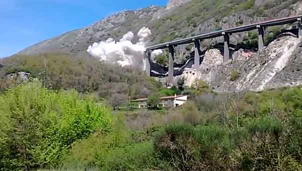 Oggi l’impresa esecutrice dei lavori sarà impegnata in una fase preparatoria delle attività, mentre domani e Giovedì le campate verranno fatte brillare a step di due alla volta, affinché le demolizioni procedano secondo fasi di approntamento e monitoraggio.