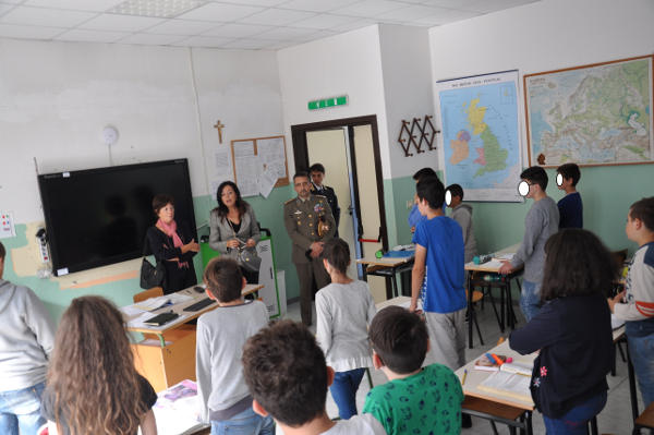 Dopo aver incontrato gli alunni della scuola primaria e  di primo grado, il Comandante Di Biasio si è intrattenuto con gli allievi delle terze classi illustrando loro i compiti e le attività dell’Esercito.