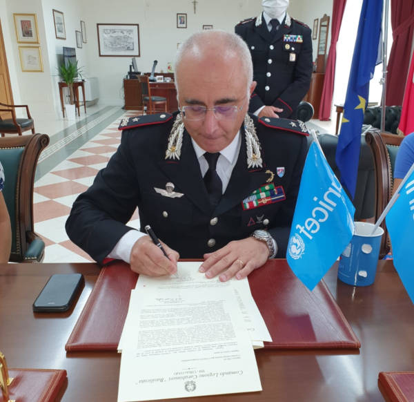 Nella mattinata di ieri, 1° Settembre, si è svolta la cerimonia della sottoscrizione della lettera d’intenti tra il Comando Legione Carabinieri “Basilicata”, nella persona del Comandante, Generale di Brigata Rosario Castello, e il Comitato Italiano per l’UNICEF- Fondazione Onlus, che ricomprende i volontari dei Comitati Regionali e Provinciali rappresentati dalla Presidente del Comitato Regionale, Dott.ssa Angela Granata.