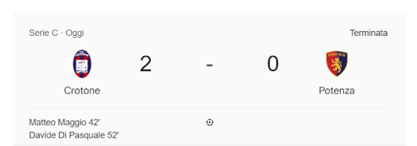 La nostra squadra, infatti, torna a casa con un pareggio: la partita si è conclusa con un 2 – 0 a favore della squadra avversaria, il Crontone.