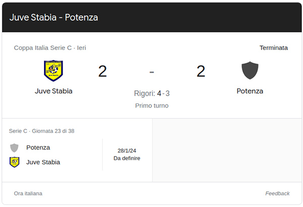 I tempi regolamentari avevano visto il pareggio di 1 a 1 con gol di Gagliano al 53′ e D’Amore al 92′.