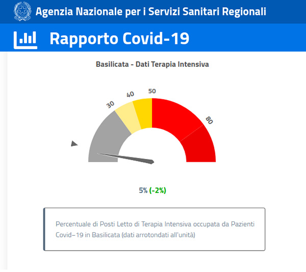 Buone notizie per la Basilicata visto che registra il cinque per cento dei posti occupati in terapia intensiva, molto al di sotto quindi della soglia d’allerta fissata al 30 per cento.