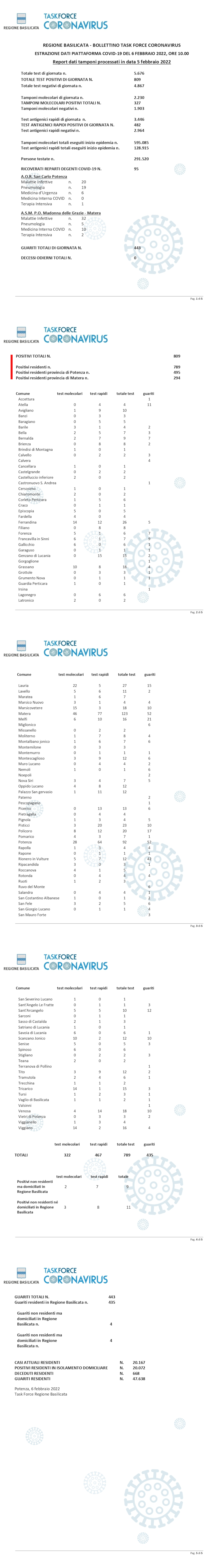 • 809 positivi su 5676 tamponi processati (2230 molecolari e 3446 antigenici).