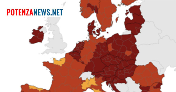 La Basilicata è a rischio moderato, colorata in giallo, così come il resto del centro-sud Italia.