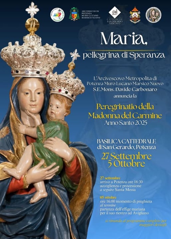 L’Arcivescovo Metropolita di Potenza-Muro Lucano-Marsico Nuovo, S.E. Mons. Davide Carbonaro, annuncia la Peregrinatio della Madonna del Carmine in occasione dell’Anno Santo 2025.
