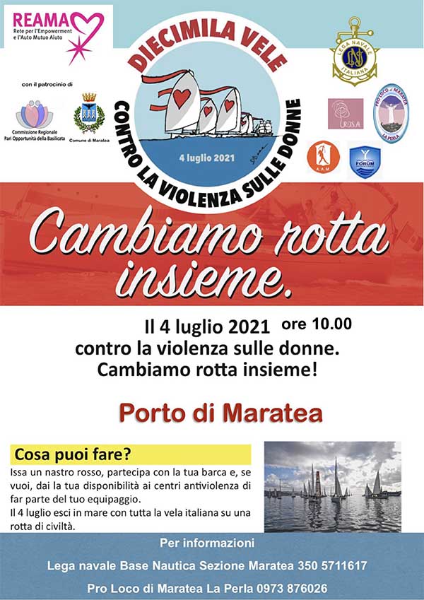 Anche la Basilicata si unirà all’evento “10.000 vele contro la violenza sulle donne. Cambiamo rotta insieme!”, un grande flash mob della vela a livello nazionale per dire basta alla violenza maschile sulle donne.