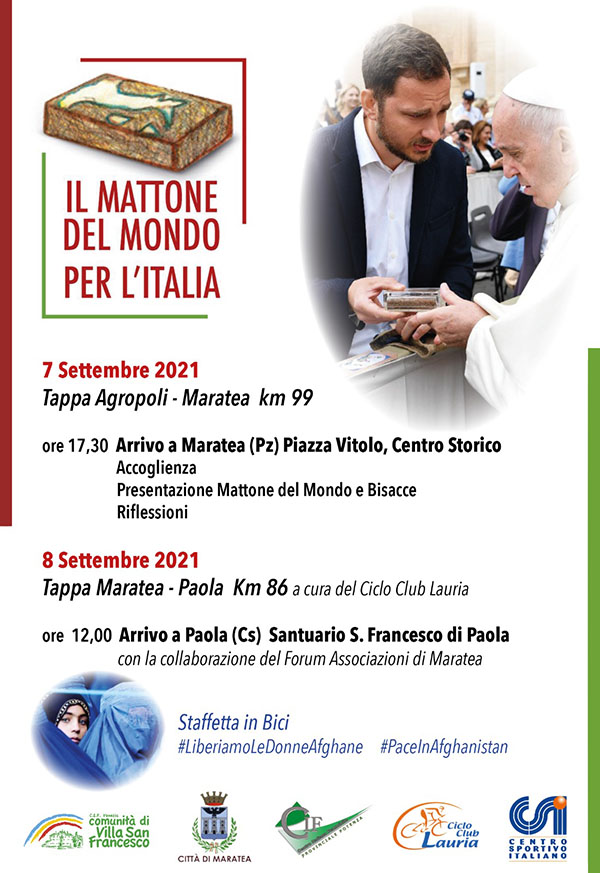 Il “Mattone del Mondo” ripartirà da Maratea, alla volta di Paola (CS), Mercoledì 8 Settembre, la tappa sarà a cura del Ciclo Club Lauria.