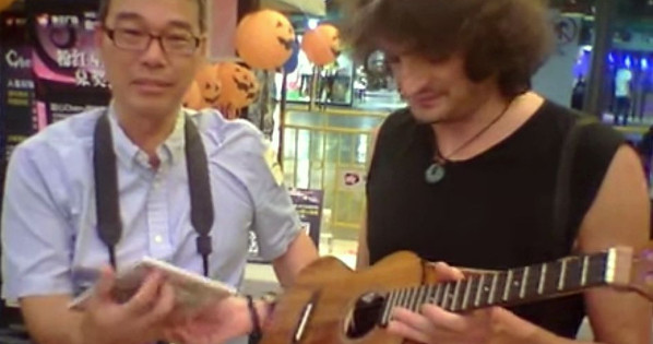 Gli imprenditori di settore e i dirigenti del rinomato marchio d’oriente Kai e Radon Guitars dunque, a fine esibizione del celebre talento italiano, decidono unanimemente di omaggiarlo con una targa al merito, il pezzo di liuteria più prestigioso di tutta la collezione esposta nella vasta fiera (un pregiato ukulele in mogano, ebano e koa) ed un contratto di esclusiva artistica e di immagine per Cina e Giappone per la stagione 2018.