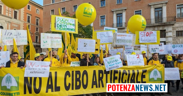C’era anche una delegazione di agricoltori e allevatori della Basilicata in piazza a Roma in occasione del via libera definitivo dell’Aula della Camera al divieto di produrre e vendere in Italia di carne coltivata.