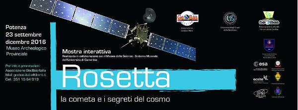 Dal 23 Settembre fino a Dicembre, l’Associazione culturale universitaria Geobas e l’Associazione scientifico divulgativa Geobas-Italia presentano la mostra interattiva “Rosetta: la cometa e i segreti del cosmo“, realizzata in collaborazione con il Museo delle Scienze – Sistema Museale dell’Università di Camerino e finanziata dall’Università degli studi della Basilicata.