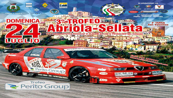 Domani, 24 Luglio avrà luogo la terza edizione della gara automobilistica Abriola-Sellata, valida come prova del Trofeo Perito Group organizzata dalla Basilicata Motorsport diretta da Carmine Capezzera, dal Comune di Abriola, dalla Regione Basilicata, dalla Provincia di Potenza, dall’Automobile Club Basilicata e dall’Automobile Club Bari-Bat.