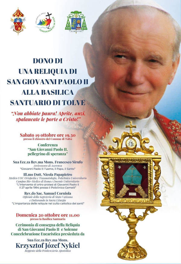 20 ottobre: Cerimonia di consegna della reliquia e Solenne Concelebrazione Eucaristica nella Basilica, presieduta da Mons. Krzysztof Józef Nykiel”.