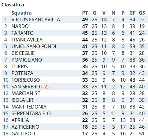 Quella odierna è quasi uno “scontro diretto” in quanto il Potenza ha 34 punti in classifica mentre il San Severo ne ha 33.