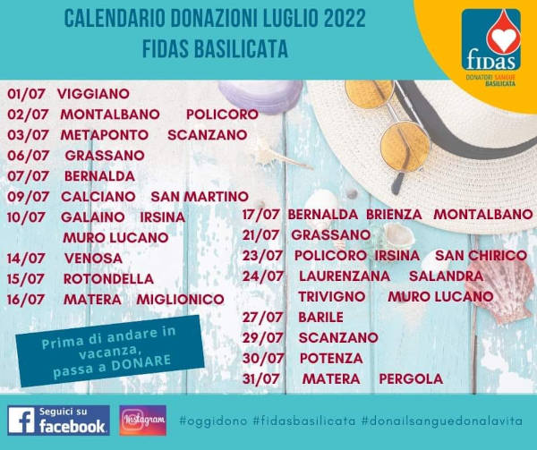 Invitiamo i donatori e anche coloro che non hanno mai donato a contattare la sede fidas basilicata più vicina“.