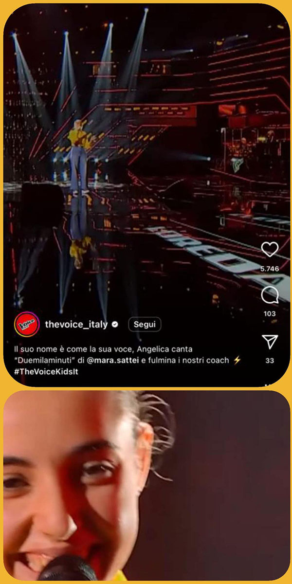 Bellissima infatti la sua performance a The Voice Italy Kids con la sua canzone “DUEMILAMINUTI”.
