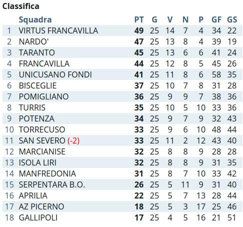 Sì è appena conclusa la 25esima giornata della serie D girone H.