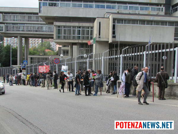 Fuori dal Palazzo di Giustizia nel frattempo si teneva una protesta organizzata da una decina di rappresentanti di alcune associazioni e privati cittadini, per la difesa del territorio lucano e il rispetto delle leggi ambientali.