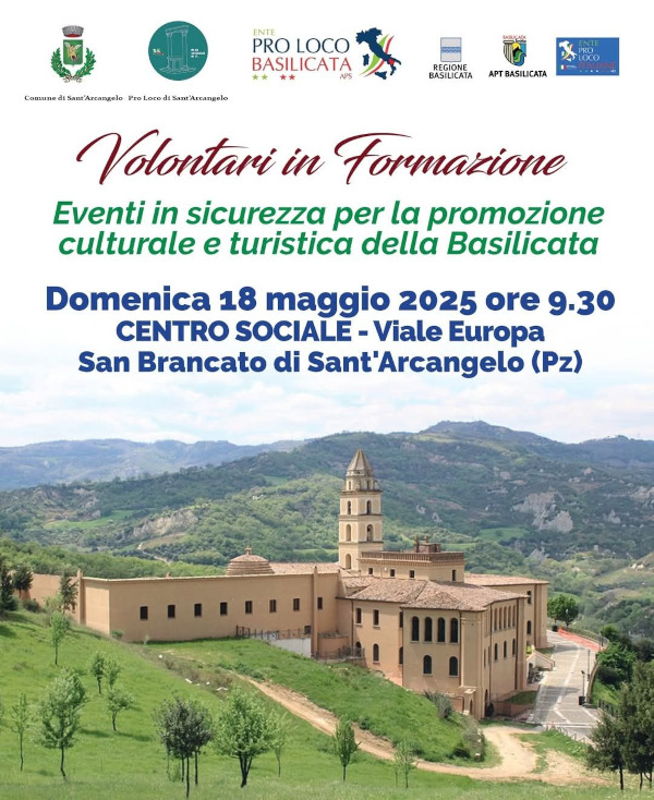 E’ in programma domenica 18 maggio 2025 dalle ore 9,30 a San Brancato di Sant’Arcangelo (Pz) il corso di formazione annuale per i volontari delle Pro Loco e degli enti affiliati alla rete associativa di terzo settore Ente Pro Loco Italiane Aps.