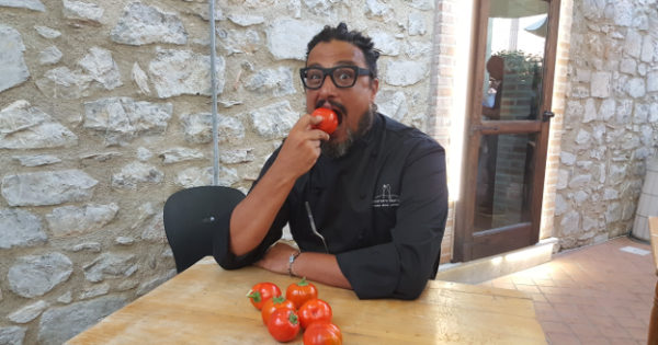 “Trovo che questa melanzana rossa, detta anche ‘melanzana a pomodoro’ sia un prodotto molto duttile, oltre che simpaticissimo da lavorare dal punto di vista dell’estetica.