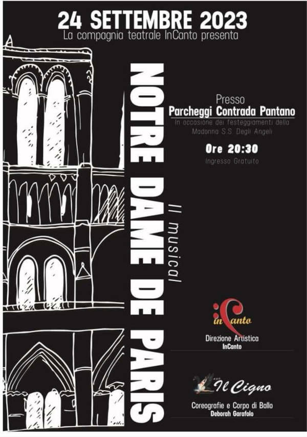 - Infine, domenica 24 settembre, il programma della festa si chiuderà con la Compagnia InCanto di Potenza che porterà in scena il musical Notre Dame de Paris.