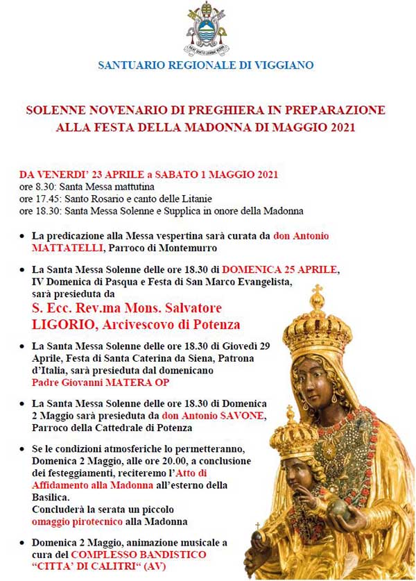 A questo proposito, la Prefettura di Potenza predispone l’impossibilità di svolgere la processione che ogni prima Domenica di Maggio permette ai fedeli e ai portatori di condurre la Madonna Nera nel Santuario del Monte di Viggiano.