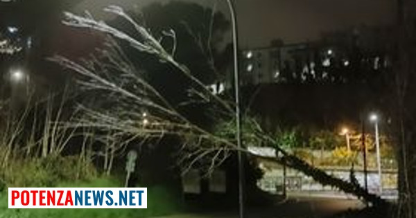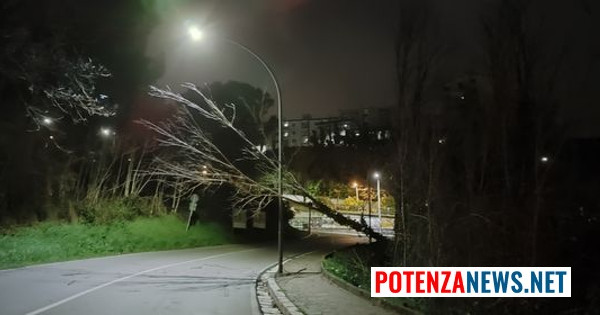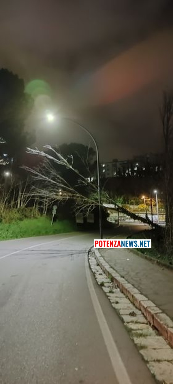 A Potenza, a causa del forte vento che si è abbattuto a partire dalla nottata passata, un albero è semi caduto sulla strada, bloccato dal palo dell’illuminazione.
