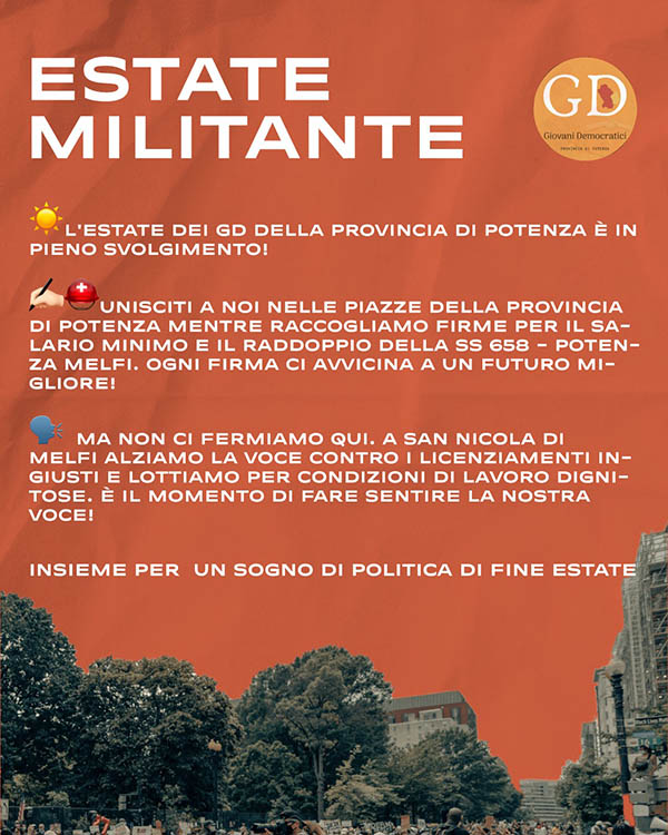 L’estate sta finendo, ma non quella dei Giovani democratici della Provincia di Potenza.