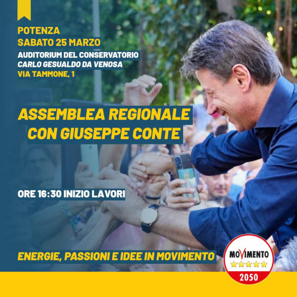 “Giuseppe Conte torna in Basilicata sabato 25 marzo con due appuntamenti: