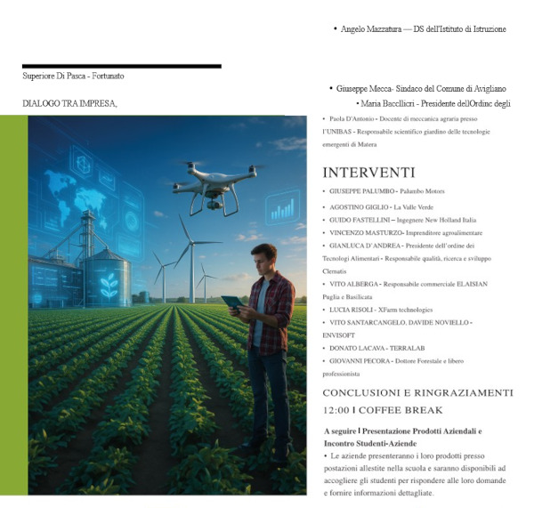 L’idea di organizzare questo incontro nasce dal desiderio della Prof.ssa Antonietta Padula dell’Istituto Di Pasca-Fortunato, di offrire agli studenti un quadro concreto delle opportunità lavorative che il settore agricolo può offrire.