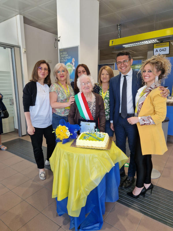 Per la festa dei 101 anni, all’ufficio postale di Villa d’Agri sono venuti a renderle omaggio i referenti aziendali della provincia di Potenza.