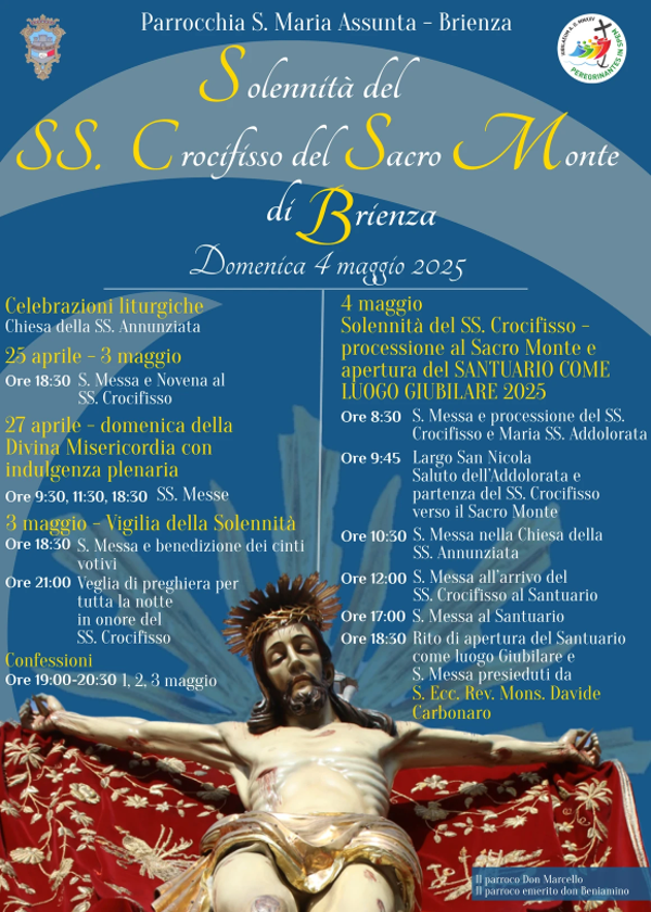 Ecco il programma completo dei solenni festeggiamenti in onore del SS. Crocifisso Miracoloso del Sacro Monte di Brienza (25 Aprile – 4 Maggio 2025):