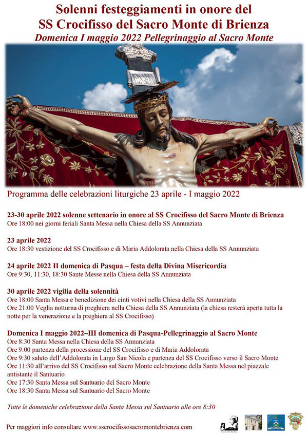 La comunità di Brienza è lieta di annunciare l’avvio dei festeggiamenti in onore del Santissimo crocifisso del Sacro Monte di Brienza che si concluderanno il 1° Maggio 2022 con il pellegrinaggio al Sacro Monte.
