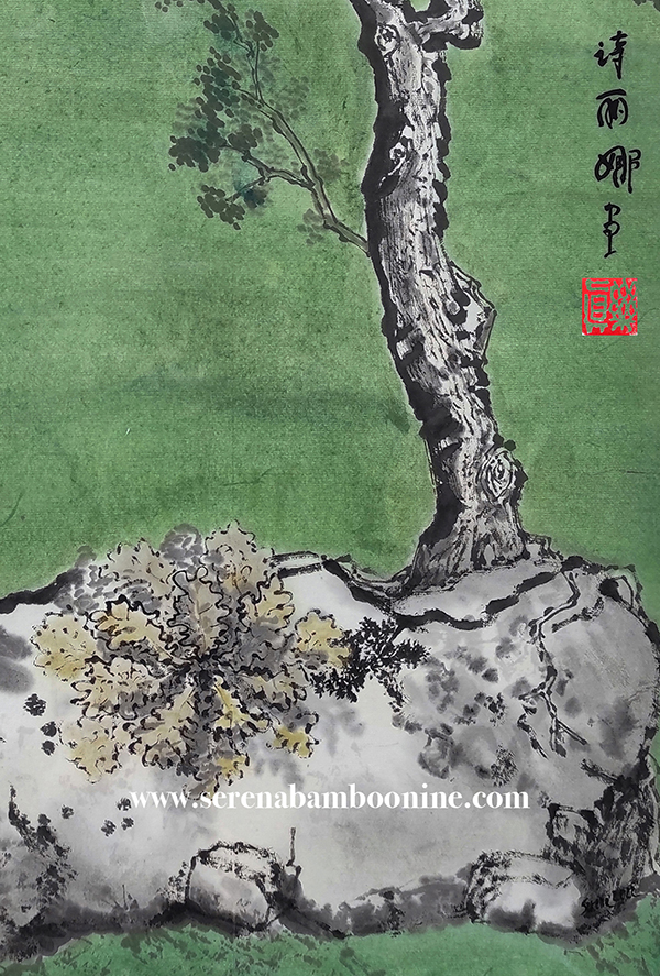 D’altro canto paesaggi realizzati con tecniche e materiali tipicamente orientali come nella pittura tradizionale cinese, “guohua”cioè nazionale, negli acquerelli ad inchiostro di Bamboonine, ci riportano in parte, alla nostra cultura nella scelta dei soggetti.