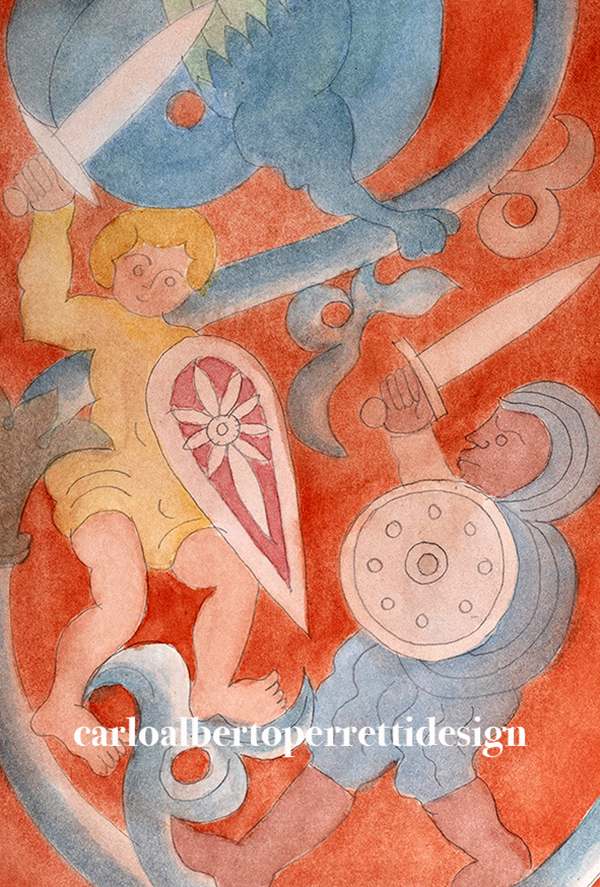 Infine è stato utilizzato un carattere onciale, realizzato a mano, per il logotipo ed i titoli delle carte, e disegnato un emblema con la testa di cervo, le colonne e la corona della Città di Brindisi”.