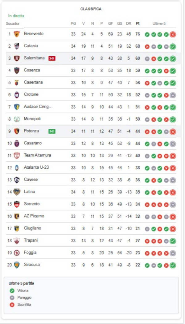 Si è chiusa poco fa la partita tra la Salernitana e il Potenza Calcio.