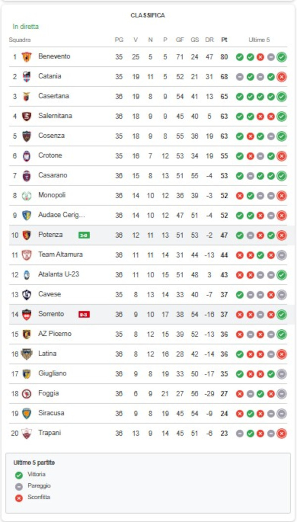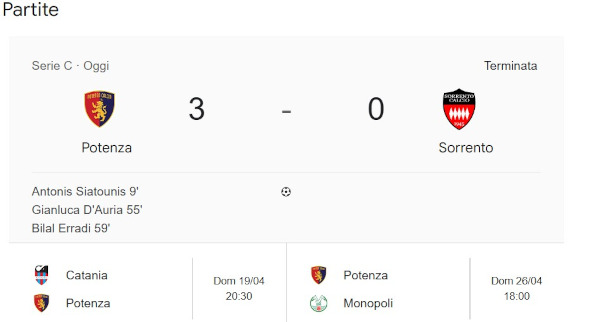 Si è chiusa poco fa la partita tra il Sorrento e il Potenza Calcio.