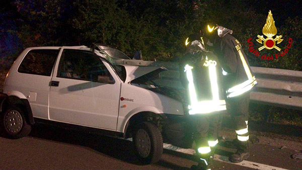 I Vigili del Fuoco arrivati sul posto, hanno trovato una Fiat 500 che per cause in corso di accertamento è andata ad impattare contro il guardrail.