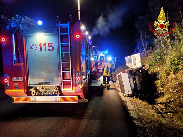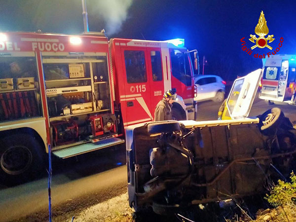 I Vigili del Fuoco giunti sul posto hanno trovato una vettura che era uscita fuori dalla sede stradale e poggiata su di un fianco.