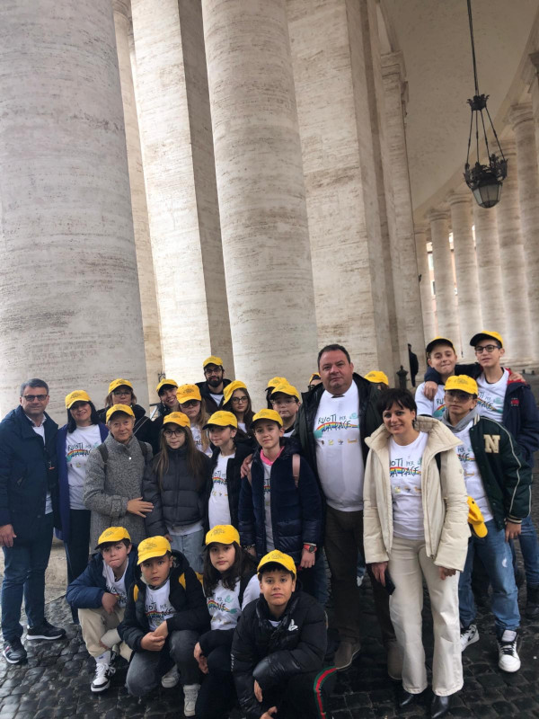 Occasione unica per i protagonisti: i ragazzi della scuola che con i docenti e la collaborazione del dirigente scolastico Rispoli hanno realizzato un brano denominato “Sogno di pace” che è stato consegnato al Papa per promuoverlo nel mondo.