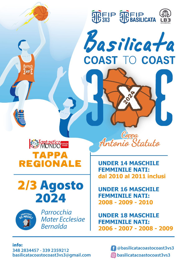 Sono state rese note le date delle tappe del “Basilicata Coast to Coast”, circuito itinerante di basket all’aperto 3×3 che si disputerà nel periodo estivo.