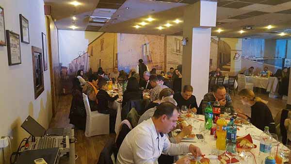 Naturalmente il menù (preparato dallo chef Rocco Sileo con Enza Barbaro) è stato quello tradizionale della cucina lucana con le orecchiette, cruschi e caciocavallo, agnello e salsiccia allo spiedo, formaggio di Moliterno e dolci natalizi.
