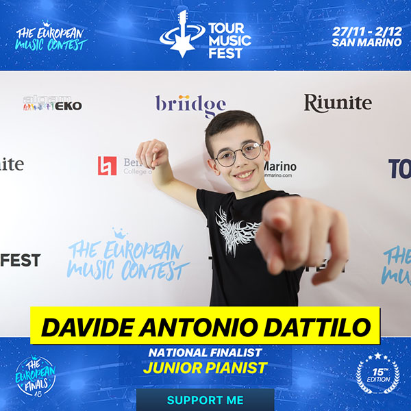 Davide Antonio Dattilo, dopo aver superato le Live Audition della nuova edizione del Tour Music Fest – The European Music Contest, vola nella Repubblica di San Marino per la finale della categoria Pianisti Junior.
