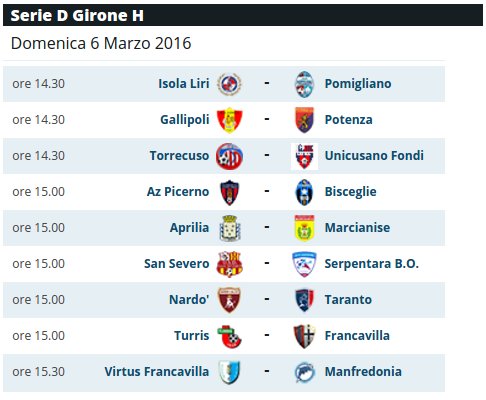 Ecco di seguito tutte le partite della 27esima giornata della serie D girone H e la classifica.